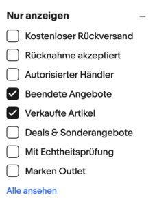 Das gibt dir einen Einblick in die realen Preise deines Wunsch-Produkts in Abhängigkeit vom Zustand, mit oder ohne Zubehör usw. und ist eine perfekte Orientierung bevor dich umschaust und eigene Gebote abgibst oder jemand versucht dich über den Tisch zu ziehen.
